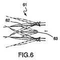 また、救命車両の駆動手段には、前進用に、船体の径方向に対向する側部に設けられ車両を推進するジェット流を発生させる一対のジェットモータ60を備える、迅速で効率的な水平退避手段が含まれている。図4および図5も参照のこと。図6から最も明らかに分かるように、各ジェットモータにはそれぞれの噴射流の噴出方向を調節するための手段61が設けられている。この手段は、図示しない制御・アクチュエータ手段の作用により水平軸63回りを回動可能な複数の制御フラップ62を備える。制御フラップ62が上向きに回動されると、噴出流は流れの主方向に対し斜め上に向かい、制御フラップが下向きに回動されると、噴出流は流れの主方向に対し斜め下に向かう。かくして制御フラップ62は車両10の高さ制御部として機能することができる。  Further, the life-saving vehicle driving means includes a pair of