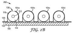 別の代替的な態様において、図2Bの横断面図に示すように、代替的なマルチチャネルケーブル、ここではLMCケーブル200が示されており、外側シース120の最上層は同軸チャネル101a〜101dの各々に積層され、下方のシース層は平坦な背面122を与えている。また、接着基材層150が、表面122の少なくとも一部分に設けられ得る。 In another alternative aspect, as shown in the cross-sectional view of FIG. 2B, an alternative multi-channel cable, here
