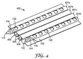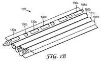 図1Aを再び参照すると、一態様において、第1のチャネル101は、1つ以上の放射アパーチャ130の配列を通じてセルラー通信信号を放射する専用の放射チャネルであり、放射アパーチャ130は、第1のチャネル101aの上から第2の外側シース120と外側導体シールド116とを切り抜いたものである。これらのスロットは、アパーチャ130がなす反復的な周期構造を構成することができ、この周期構造は、特定の軸方向長さと横方向幅を有するように形成され、第1のチャネル101aの長さ方向に沿って軸方向に離間している。そのようなアパーチャが規則的な間隔と寸法とを有する場合、開放領域と被覆領域との間のインピーダンス不整合が同調効果を生じ得る。代替的な態様において、以下で更に詳細に示すように、アパーチャ130は、第1のチャネル101aの長さ方向に沿って、非周期的な、又は更には不規則的な構成で設けられ得る。一態様において、チャネル101aは、放射(送信)及び受信チャネルとして動作し得る。他の態様において、第1のチャネル101aは、送信チャネルとしてのみ動作する。他の態様において、第1のチャネル101aは、受信チャネルとしてのみ動作する。 Referring again to FIG. 1A, in one aspect, the first channel 101 is a dedicated radiating channel that radiates cellular communication signals through an array of one or more radiating