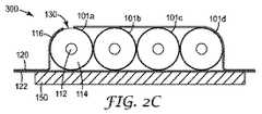 更なる代替形態において、図2Cの横断面図に示すように、代替的なLMCケーブル300が示されており、外側シース120は、同軸チャネル101a〜101dの各々に積層されているが、これら同軸チャネル101a〜101dは互いに押し付けられており、そのため、各チャネルは隣接するチャネルに接触し、LMCケーブル300もまた平坦な裏面122を有している。また、接着基材層150が、表面122の少なくとも一部分に設けられ得る。更なる代替的な態様において、LMCケーブル200及び300に対し、各チャネル101a〜101dは、導体シールド116なしに形成され得る。 In a further alternative, as shown in the cross-sectional view of FIG. 2C, an