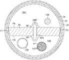 図2Aに示すようにより大きい幅W及びより小さい厚さTを有する、矩形断面Rの平坦梁すなわち「ブレード」30(「梁」及び「ブレード」は本明細書では互換的使用される)として構成され、平坦又は平滑な2つの対向する矩形面FA及びFB(又は側面、本明細書では互換的に使用される)FA及びFB、並びに例えば、梁30の長手方向の縁に沿って出っ張り及び/又は凹みの形態を提供するように、平らでない、粗い、凹凸のある、又は鋸歯状の、摩擦を引き起こす2つの対向する縁表面E1及びE2を画定する、細長い支持構造が、偏向可能区域14の長さを通して延在する。梁30は、力を加えると、その本来の形状から離れて伸張させるか又は屈曲させることが可能であり、かつ力を取り除くと、実質的に本来の形状に戻る能力がある、任意の適切な降伏強さの高い材料で構築されてもよい。支持梁30のための適切な材料としては、硬質、冷間加工ステンレス合金鋼(304又は316硬質状態)、ニッケル/チタン合金(ニチノール)又はリン青銅合金が挙げられる。ニチノール合金は、典型的には約55%ニッケル及び45%チタンからなるが、約54%〜約57%のニッケル及び残部がチタンからなってもよい。適切なニッケル/チタン合金は、延性、強度、耐食性、及び温度安定性とともに、優れた形状記憶性を有する、ニチノールである。梁30は、偏向可能区域14の中央管腔19を、2つの半分の空間19A及び19Bへと効果的に分割又は二分する。リード線、ケーブル、及び配管などの構成部品は、著しい中断又は障害なしにいずれの空間も通過することができる。  As a flat beam or “blade” 30 (“beam” and “blade” are used interchangeably herein) with a rectangular cross-section R having a larger width W and a smaller thickness T as shown in FIG. 2A Two opposing rectangular surfaces FA and FB (or side surfaces, used interchangeably herein) FA and FB, and, for example, ledges along the longitudinal edges of the