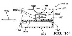 図3、5、および93で最もよく見られるように、ケース68の中心線は、最初に手作業で、組立て軸96に関して整列させられ、回路板部分組立体64、CDプレーヤ部分組立体66、および前部プレート70からなる部分組立体に関して回転して位置決めされ、それにより、ケース側壁部分82および84内に一体的に形成されたガイドウェイ160および162の協働する第1の対が、CDプレーヤ搭載ブラケット106および108に位置合わせされ、同時に、ケース側壁部分82および84内に一体的に形成されたガイドウェイ164および166の協働する第2の対が、共通PCB98の横方向縁ガイド表面168および170に位置合わせされる。ケース68は、次に、組立て軸96に沿って手作業で変位され、ついには、前部開口94を画定するケース68の前縁が、前部プレート70の後部表面に接触する。その後、ケース68の上側および下側壁部分78および80に一体的に形成された協働する傾斜付きスナップ係合機構172および174ならびに前部プレート70は、それぞれ、一時的に互いに自己変位し、スナップバックして自己係合し、それにより、両者間の確実なインターロックが確立される。 As best seen in FIGS. 3, 5, and 93, the centerline of