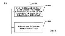図6は、無線通信装置600の一部分のブロック図表現である。アンテナの特徴、例えば送信アンテナ構成、により幾つかのコードブックから1つのコードブックを選択するためにモジュール602が提供される。それらのコードブックの各々は、幾つかのアンテナの特徴のうちの1つ、例えば図4A乃至Fにおいて例示された送信アンテナ構成、と関連付けることができる。例えばUE120に選択されたコードブックの指示を送信するためにモジュール604が提供される。一例においては、選択されたコードブックの指示は、コードブック自体よりも少ない情報を含むことができる。 FIG. 6 is a block diagram representation of a portion of