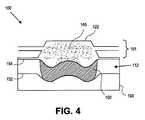 [00038]いくつかの実施形態では、ゲル結合部112は、チャンバ122などの一定の容積空間内に位置することはでき、ゲル結合部112の移動は、一定の容積によって制限される。いくつかの実施形態では、ダイアフラム152、154の膨張した形状は、ゲル結合部112の移動量を制限する。例えば、ダイアフラム152、154は、低い曲げ剛性を有するが、高いメンブレンの剛性を有する薄いポリマーを含むことができ、ゲル結合部112は、設定距離だけを移動できるようになっている。成形したダイアフラムを有することは、成形したダイアフラムがほとんど伸縮に耐えないので、伸縮は、数サイクルの伸縮後に問題を生じるようなやり方でゲル状材料をダイアフラムから切り離させる可能性があるため有利であり得る。  [00038] In some embodiments, the