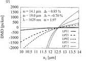 そこで、モード間の群遅延差を50ps/km程度に抑えた光ファイバや、基本モードが高次モードよりも速い正の群遅延差を有する光ファイバと基本モードが高次モードよりも遅い負の群遅延差を有する光ファイバを組み合わせたモード分散補償伝送路が提案されている(例えば、非特許文献5、6を参照。)。 Therefore, an optical fiber in which the group delay difference between modes is suppressed to about 50 ps / km, an optical fiber in which the fundamental mode has a positive group delay difference faster than the higher-order mode, and a negative negative in which the fundamental mode is slower than the higher-order mode. A mode dispersion compensating transmission line combining optical fibers having a group delay difference has been proposed (see, for example, Non-Patent