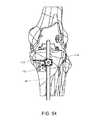 現在、一般的な慣行では、内側の大腿骨顆から切除の深さを測定するのではなく、滑車のレベルまで遠位大腿骨を切除することが好まれている。しかし、少なくとも場合によっては、遠位大腿骨インプラントの厚さ以外のレベルで遠位大腿骨を切除するあらゆる傾向に対抗する方法および装置を利用することが好ましいであろう。たとえば、遠位の内側(および/または外側)顆から測定される遠位大腿骨インプラントの厚さに対して同等の量を切除することが好ましいであろう。これにより、後および/または前十字靱帯の大腿骨上で近心取付け箇所をより良好に補償することができる。また、少なくともいくつかの場合には、伸展空間および弛緩の初期の試験および評価を可能にする方法および装置を利用することも好ましいであろう。そのような方法および装置のいくつかの例について、以下に説明する。 Currently, it is common practice to excise the distal femur to the level of the pulley rather than measuring the depth of excision from the medial femoral condyle. However, at least in some cases, it may be preferable to utilize methods and devices that counter any tendency to resect the distal femur at a level other than the thickness of the distal femoral implant. For example, it may be preferable to excise an amount equivalent to the thickness of the distal femoral implant measured from the distal medial (and / or lateral) condyle. This can better compensate for the mesial attachment location on the femur of the posterior and / or anterior cruciate ligament. In at least some cases, it may also be preferable to utilize methods and devices that allow early testing and evaluation of extension space and relaxation. Some examples of such methods and apparatus are described below.
