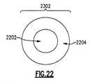 図22は、従来技術によく使用されるジャンクション2302の構成を示している。図示のように、ジャンクション2302は、一般に、2つの異なる部分、すなわち、内側のフェライトディスク2202および外側の単一誘電材料のリング2204から構成されている。誘電リング2204の機能は、ジャンクションの種類に依存する。たとえば、誘電リング2204は、1)共振周波数を維持しながら、相互変調を改善するために、アイソレーター/サーキュレーターの本体からフェライト2202を磁気的に隔離するように使用されてもよく、2)整合回路の一部として、中心導体およびその周囲の誘電体により形成されたインピーダンス転換体を保持するように使用されてもよく、または3)(以下で説明する)中心導体とともに、フェライト装置のジャンクションを有する外部回路、典型的には50オームの外部回路に接続するように使用されてもよい。しかしながら、誘電体の上記用途は、例示のみであり、これらの例示に限定されない。 FIG. 22 shows the configuration of the