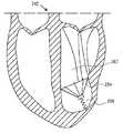 次に能動アンカ236を展開する。図1乃至図5Jに示されるインプラントでは、能動アンカ236はインプラントの先端に設けられている。このアンカは図5Cに示されるように組織に挿入される。他の形態(後述する)では、インプラントの先端には、組織を貫通しない一つあるいはそれ以上の無傷(組織を傷つけない)脚が形成されている。図5Cにおいて、能動アンカの先端は、装置のハンドルにある制御部材(例えば、アンカノブ)を操作することにより(例えば、回転することにより)組織内に配置する。能動アンカ236は心臓242の心筋を貫通し、左心室246の無動部250の頂部252の所定位置に心臓装置34を固定する。 The