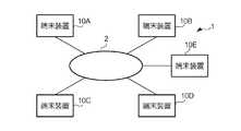 図1は、本発明の一実施形態の通信システム1に係る装置を示した図である。通信回線2は、例えばデータ通信が行われるLAN(Local Area Network)であり、複数のコンピュータ装置が接続される。通信回線2は、LANに限定されるものではなく、WAN、インターネット、電話回線など、コンピュータ装置がデータ通信を行う通信回線を含んでもよい。端末装置10A〜10Eは、データ通信を行う装置であり、本実施形態においては、所謂パーソナルコンピュータである。端末装置10A〜10Eは、通信回線2に接続されており、通信回線2を介してデータ通信を行う。端末装置10A〜10Eは、ハードウェア構成は同じであるため、以下、各々を区別する必要がない場合は、「端末装置10」と称する。[Embodiment]