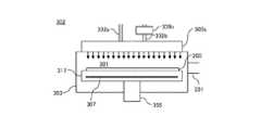 ヒータ207の内側には、ヒータ207と同心円状に反応管203が配設されている。反応管203は、例えば石英(SiO2)または炭化シリコン(SiC)等の耐熱性材料からなり、上端が閉塞し下端が開口した円筒形状に形成されている。反応管203の下方には、反応管203と同心円状に、マニホールド(インレットフランジ)209が配設されている。マニホールド209は、例えばステンレス(SUS)等の金属からなり、上端および下端が開口した円筒形状に形成されている。マニホールド209の上端部は、反応管203の下端部に係合しており、反応管203を支持するように構成されている。マニホールド209と反応管203との間には、シール部材としてのOリング220aが設けられている。マニホールド209がヒータベースに支持されることにより、反応管203は垂直に据え付けられた状態となる。主に、反応管203とマニホールド209とにより処理容器(反応容器)が構成されている。処理容器の筒中空部には処理室201が形成されている。処理室201は、複数枚の基板としてのウエハ200を、後述するボート217によって水平姿勢で垂直方向に多段に配列した状態で収容可能に構成されている。A