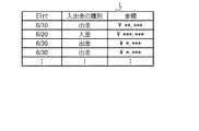 図5は、入出金リストLの一例を示す図である。入出金リストLは、図5に示されるように、日付と、入出金の種別と、金額とを対応づけてなる複数のレコードにより構成される。各レコードは、例えば、時系列(より具体的には、日付昇順)に並べられる。日付のフィールドには、入金日又は出金日が入力される。入出金の種別のフィールドには、入金であるか出金であるかを示す情報が入力される。例えば、ブーリアン型の変数が入力される。金額のフィールドには、入金額又は出金額が入力される。この入出金リストLは、後述する残高不足判定処理が実行されるたびに初期化される。 FIG. 5 is a diagram showing an example of the deposit / withdrawal list L. As shown in FIG. As shown in FIG. 5, the deposit / withdrawal list L includes a plurality of records in which dates, deposit / withdrawal types, and amounts are associated with each other. Each record is arranged, for example, in time series (more specifically, in ascending date order). In the date field, the deposit date or withdrawal date is entered. In the field of the deposit / withdrawal type, information indicating whether the deposit or withdrawal is entered. For example, a Boolean variable is input. A deposit amount or a withdrawal amount is entered in the amount field. This deposit / withdrawal list L is initialized every time a balance shortage determination process described later is executed.
