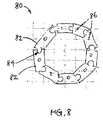 いくつかの実施形態では、ディスクは、作動ケーブルがその中を通って延びる複数の穴を含む。ディスクはそれぞれ、互いに対向して配置される、内縁から内バネのコイル間の間隙に延びる1対の内側タブを含む。隣接するディスクは、隣接するディスクの内側タブから約90度離間して配置される、一方のディスクの内側タブで方向付けられる。ディスクはそれぞれ、隣接するディスク間を合わせるための外側合わせ面と内側合わせ面とを含み、一方のディスクの外側合わせ面は、隣接するディスクの内側合わせ面と合わさる。外側合わせ面と内側合わせ面の形状は概ね球面である。複数のエラストマー部材はそれぞれ、隣接するディスク間に配置され、接続される。リストカバーが、内バネと環状ディスクの外側に配置される。リストカバーは非導電体材料の平らな螺旋を含む。平らな螺旋は、螺旋の隣接する層間で重なり合う、丸められた縁を含む。平らの螺旋は、内バネの軸に概ね平行するように方向付けられた溝を含む。 In some embodiments, the disk includes a plurality of holes through which the actuation cable extends. Each of the disks includes a pair of inner tabs that are disposed opposite each other and extend from the inner edge to the gap between the coils of the inner spring. Adjacent discs are oriented with the inner tabs of one disc located about 90 degrees apart from the inner tabs of the adjacent discs. Each disc includes an outer mating surface and an inner mating surface for matching adjacent discs, and the outer mating surface of one disc is mated with the inner mating surface of the adjacent disc. The outer and inner mating surfaces are generally spherical in shape. Each of the plurality of elastomer members is disposed and connected between adjacent disks. A wrist cover is disposed outside the inner spring and the annular disk. The wrist cover includes a flat helix of non-conductive material. A flat helix includes rounded edges that overlap between adjacent layers of the helix. The flat helix includes a groove that is oriented to be generally parallel to the axis of the inner spring.