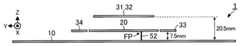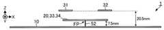 なお、給電点FPのオフセット方向が−X方向または+X方向であって、アンテナ素子20の中心Cと給電点FPとを結ぶ直線SLの延在する方向(第1方向)が±X方向になり、この第1方向と直交する方向が±Y方向になる場合は、アンテナ素子20に対して±X方向の両側に設けられた無給電素子31,32について、無給電素子31,32の各々をアンテナ素子20と同一平面上またはアンテナ素子20よりZ方向側に配置すると共に、無給電素子31,32の各々のX方向の幅をアンテナ素子20のX方向の幅より小さくすればよい。また、アンテナ素子20に対して±Y方向の両側に設けられた無給電素子33,34の各々を、アンテナ素子20よりZ方向側であって、かつZ方向からアンテナ1を平面視した場合にアンテナ素子20と一部が重なる位置に配置すればよい。 The offset direction of the feed point FP is the −X direction or the + X direction, and the direction (first direction) in which the straight line SL connecting the center C of the