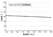 図18は、アンテナ2のXZ平面における指向性について、半値幅の周波数特性を示すグラフである。同図に示す半値幅の周波数特性は、図13に示した第1実施形態に係るアンテナ1の特性とおおむね同じである。したがって、第2実施形態に係るアンテナ2についても、図13に示した対比例2に係るアンテナ9の特性と比較した場合に、半値幅(指向性)の周波数変動を小さく抑制できていることがわかる。 FIG. 18 is a graph showing the frequency characteristics of the full width at half maximum for the directivity in the XZ plane of the antenna 2. The frequency characteristics of the half width shown in the figure are substantially the same as the characteristics of the