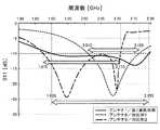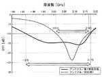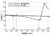 図22は、アンテナ3,8のS11特性を示すグラフである。リターンロスが−10dB以下の範囲をアンテナの動作帯域とした場合、対比例1に係るアンテナ8の動作帯域が2010MHz〜2165MHzになるのに対し、第3実施形態に係るアンテナ3の動作帯域は1870MHz〜2175MHzになる。 FIG. 22 is a graph showing the S11 characteristics of the antennas 3 and 8. When the return loss is in the range of −10 dB or less as the operating band of the antenna, the operating band of the antenna 8 according to the proportional 1 becomes 2010 MHz to 2165 MHz, whereas the operating band of the antenna 3 according to the third embodiment is 1870 MHz. ~ 2175MHz.