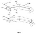 ガイド要素220は、いくつかの異なる構成および取付機構を用いて自己集合磁気吻合デバイス240に結合されることができる。ガイド要素220は、単純にデバイス240に結束されてもよいか、またはガイド要素220は、接着剤、例えば、アクリレート糊を用いて、またはクリップ、ねじ、もしくはリベット等の締結具を用いてデバイス240に取り付けられることができる。デバイス240に接続されるガイド要素220の例示的構成が、図3に示され、それによって、ガイド要素220は、磁性セグメント140内のチャネル310内に置かれ、次いで、外骨格120が、ガイド要素を閉じ込める磁性セグメント140の周囲に形成されるか、または置かれる。ガイド要素220は、外骨格120における開口部330から出現し、したがって、ガイド要素220がデバイス240間の噛合と干渉しないことを確実にする。  The
