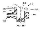 筐体はさらに、筐体チャネル340の周辺を中心として配置され、筐体から縦方向に突出する、1つまたはそれを上回る突起355を備え得る。突起は、図6A−6Eに示されるような4つの突起を備え、突起の各内面は、筐体チャネル内に配置されるべき調節可能コネクタの4つの側のそれぞれに係合するように構成され得る。相互に対向して配置される突起のうちの2つは、筐体チャネルの平坦内面347を有するように構成されることができる一方、また、相互に対向して配置される残りの突起のうちの2つは、筐体チャネルの丸形内面349を有するように構成されることができる。突起のうちの1つまたはそれを上回るものはさらに、突起の縁に配置される、外向きに面する辺縁357を備え得る。辺縁357は、回転ナットを筐体に確実に結合し、ナットの回転中に縦方向軸310に沿った回転ナットの軸方向移動を防止するように、本明細書にさらに詳細に説明されるような回転ナット内の対応するマニホールド溝に係合するように構成され得る。辺縁357はさらに、辺縁をナットのマニホールド溝の中に誘導することによって、筐体への回転ナットの結合を促進するように構成される、面取り部359を備え得る。  The housing may further include one or
