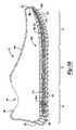 図38は、図37の線38−38で切った模式図で、アウトソール210fの内面214に配置されたケーシング300fを示す。図1〜図4のソール構造200のキャビティ240の深さと比較して、ソール構造200fのキャビティ240fは、ミッドソール220またはシュトローベル(stroble)が存在しないので、より大きな深さを含み得る。ケーシング300fは、可撓性かつ多孔質の材料から形成されてもよい。例えば、ケーシング300fは、図1〜図4のケーシング300を形成するメッシュ材料および/またはナイロン材料から形成することができる。図1〜図4に関して上述したのと同様の方法で、エラストマー材料310をケーシング300fの表面に塗布してケーシング300fにケーシング300fをカプセル化する可撓性外皮を提供することができる。ここで、ケーシング300fの可撓性外皮は、ケーシング300fが、アウトソール210fと足の底面との間に配置された柔軟なミッドソールまたはシュトローベル(stroble)に対応することを可能にする。 FIG. 38 is a schematic view taken along line 38-38 of FIG. 37 and shows the casing 300f disposed on the