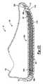 仕切り802、804は、縫合部826または他の適切な固定技術によって、お互いに、及び内壁306及び/又は外壁306にそれぞれ固定することができる。図8は、3つの内部領域810、812、814を画定するための2つの仕切り802、804を含むケーシング300を示しているが、1つ以上の仕切りの任意の構成を用いて2つ以上の内部領域を画定することができる。いくつかの実施形態では、ケーシング300は、第1の端部302と第2の端部304との間の長さに沿って、2つ以上の内部領域810、812、814(図8)と単一の内部領域710との組み合わせを含む。例えば、踵部16または前足部12のようなソール構造200の傾斜荷重負荷中により頻繁に圧縮することが可能なケーシング300のセグメントは、内部の粒子状物質350の動きを制限する2つ以上の内部領域を有することができる。その一方、中足部14のように、より頻繁に圧迫されない、または低圧縮下にあるケーシング300のセグメントは、単一の内部領域710を含み得る。ケーシング300が粒子状物質350の自由な動きを制限するが、ケーシング300内に存在する粒子状物質350のいくらかの移動が望ましい場合がある。例えば、中足部14に近接するセグメントでは、アウトソール210の接地面212が踵部16と前足部12との間で地面との接触のために転動するときに、ケーシング300に対する粒子状物質350の動きに傾斜クッションを提供する。踵部16と前足部12との間に形成される。