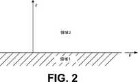 図2を参照して、1907年にJonathan Zenneckによって、彼の論文、Zenneck,J.の「On the Propagation of Plane Electromagnetic Waves Along a Flat Conducting Surface and their Relation to Wireless Telegraphy」(Annalen der Physik,Serial 4,Vol.23,September 20,1907,846〜866ページ)に記載されたように導出されたマクスウェル方程式に対する境界値解の検討のために提供する伝搬境界面を示す。図2は、領域1として示された損失性導電媒体と領域2として示された絶縁体との間の境界面に沿って放射状に伝搬する波動に対する円筒座標を示す。領域1は、例えば、任意の損失性導電媒体を含むことができる。一例では、そのような損失性導電媒体は、地球又は他の媒体などのテレストリアル媒体を含むことができる。領域2は、領域1と境界界面を共有する第2の媒体であり、領域1に対して異なる構造パラメータを有する。領域2は、例えば、大気又は他の媒体などの任意の絶縁体を含むことができる。そのような境界界面に対する反射係数は、複素ブルースター角での入射に対してのみゼロとなる。Stratton,J.A.の「Electromagnetic Theory」(McGraw−Hill,1941,516ページ)を参照されたい。 Referring to FIG. 2, by Jonathan Zenneck in 1907, his paper, Zenneck, J. et al. ”On the Propagation of Plane Electromagnetic Waves Along a Flat Conducting Surface and the Relative to Wireless Telph.” (Annal 23 Phys. We show the propagation boundary surface provided for studying the boundary value solution for the Maxwell equation. FIG. 2 shows cylindrical coordinates for a wave that propagates radially along the interface between the lossy conductive medium shown as