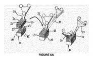 図6Aに示す実施形態によれば、ベースに対するトラッカの1つ又はそれよりも多くの決定された可能な位置を可能にする再現可能な固定によって、トラッカをベースに取り外し可能に固定することができる。例えば、トラッカ20は、ベースの支持面11とは反対側の表面にあるそれぞれの円筒形の開口12’と係合する2つの円筒形の突起22’を含む支持体21を含む。ベースは、支持面11とは反対側の表面から延びるフィンガ13を更に含む。トラッカの支持体21は、トラッカが第1の可能な位置でベースに固定されるときに1つの通路23と係入するように構成され(図6Aの中央を参照)且つトラッカが第2の可能な位置でベースに固定されるときに他の通路に係入するように構成される(図6Aの右側を参照)2つの通路23を含む。以下により詳細に説明するように、フィンガ13の頂部は、トラッキングされたツール24を用いてベースに対するトラッカの実際の位置を決定する基準点(reference point)として働く。そのような対称的な固定は、特にナビゲーションのために使用される位置特定カメラの位置に依存して、手術空間にトラッカを位置付けるより多くの柔軟性を医療スタッフにもたらす点において、有利である。それは外科処置の開始時に骨の上でのベースの位置決めに関連する制約を解除することにも有利である。医療スタッフは、骨に対するベースの位置決めに焦点を置き、骨固定の骨質のみに依存して位置決め方向を選択し、然る後、適切な手術設定に依存してベースの上にトラッカを位置付けることができる。他方、図6Bに示すように、ベース10に対する位置合わせファントム30の再現可能な固定は特異である。この目的を達成するために、位置合わせファントム30は、ベースの支持面11とは反対側の表面にある円筒形の開口12’と協働するが、フィンガ13について1つの通路33とだけ協働する、2つの円筒形の突起32’を含む。上述の実施形態において、ベースに対するトラッカの2つの可能な位置は対称的である。しかしながら、トラッカのために2つよりも多くの可能な位置があってよい。例えば、実質的に円形の形状を有するベースの場合(図示せず)、再現可能な固定は、ベースの中心にある円錐の突起と、トラッカの可能な位置を定めるよう所与の角度位置に配置されるフィンガとを含むことができる。 According to the embodiment shown in FIG. 6A, the tracker can be removably secured to the base by a reproducible fixation that allows one or more determined possible positions of the tracker relative to the base. . For example, the