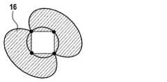 他の場合(同様に破線で示す)、動脈瘤の壁の一部が内側に湾曲した形状を有する場合、角度βが負になるように構成することが有利な場合もある。理解すべき重要なことは、個々のループ(12)/フィラメントの角度が異なり得、不規則な形状の動脈瘤を治療する場合、それは非常に有利であるということである。 In other cases (also indicated by dashed lines), it may be advantageous to configure the angle β to be negative if a portion of the aneurysm wall has an inwardly curved shape. The important thing to understand is that the angle of the individual loops (12) / filaments can be different, which is very advantageous when treating irregularly shaped aneurysms.