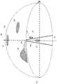 表示制御装置は、このような広視野画像の一部範囲を表示装置に表示する。図1(A)において、表示範囲Bは、広視野画像のうち、第1軸の正方向(上方向)の頂点である第1頂点(天頂)P1を含む範囲を示す。表示範囲Cは、広視野画像のうち、第1軸の正方