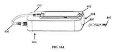 したがって、本明細書に提供されたカートリッジコンポーネント、カートリッジ、システム、および方法は、複数の交流(AC)電極を含むシステムおよびデバイスと合わせて使用されることもあり、AC電極は、誘電泳動(DEP)電界領域を確立するために、選択的に電圧が印加されるように構成される。いくつかの態様では、AC電極は、誘電泳動(DEP)高電界領域、および誘電泳動(DEP)低電界領域を含む、多数の誘電泳動(DEP)電界領域を確立するために、選択的に電圧を印加されるように構成されてもよい。いくつかの例では、ACの動電学的効果は、DEP電界の、低電界領域中のより大きい粒子材料の濃縮、および/または高電界領域中の分析物(例えば核酸などの高分子)の濃縮(または採取または単離)をもたらす。例えば、電極、およびDEP電界における細胞の濃縮のさらなる説明は、PCT特許公報国際公開第2009/146143号A2において発見されることもあり、その説明は、そのような開示に関して、本明細書において組み込まれる。代替的に、本明細書に提供されたカートリッジコンポーネント、カートリッジ、システム、および方法を利用するシステムおよびデバイスは、直流(DC)電極を活用する。いくつかの実施形態では、複数のDC電極は、少なくとも2つの矩形電極を含み、アレイ全体にわたって広がる。いくつかの実施形態では、DC電極はAC電極間に点在する。 Thus, the cartridge components, cartridges, systems, and methods provided herein may be used in conjunction with systems and devices that include multiple alternating current (AC) electrodes, and the AC electrodes may be used for dielectrophoresis (DEP). 2.) A voltage is selectively applied to establish an electric field region. In some embodiments, the AC electrode is selectively energized to establish multiple dielectrophoretic (DEP) electric field regions, including dielectrophoretic (DEP) high electric field regions, and dielectrophoretic (DEP) low electric field regions. May be configured to be applied. In some instances, the electrokinetic effect of AC is the concentration of larger particulate material in the low field region of the DEP field, and / or of the analyte (eg, a macromolecule such as a nucleic acid) in the high field region. It results in concentration (or collection or isolation). For example, further description of the electrodes and enrichment of cells in the DEP field may be found in PCT Patent Publication WO 2009/146143 A2, the description of which is incorporated herein for such disclosure. Be Alternatively, systems and devices utilizing cartridge components, cartridges, systems, and methods provided herein utilize direct current (DC) electrodes. In some embodiments, the plurality of DC electrodes include at least two rectangular electrodes and extend across the entire array. In some embodiments, the DC electrodes are interspersed between the AC electrodes.