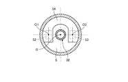 図2から図5に示すように、流路38は、その外周側に所定隙間を空けて案内管51が配置される。流路38と案内管51は、軸方向Oに沿って延出され、同心状に配置される。小型電磁流量計39は、案内管51の内面と流路38の外面との間の空間部Sに配置される。案内管51は、内部の空間部Sに不活性ガス(例えば、アルゴンガスや窒素ガスなど)が充填される。 As shown in FIGS. 2 to 5, the