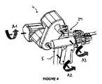 切断面内で鋸刃を誘導するように意図されたスロットを備える切断ブロックが、2つのモータを支持するアームに取り付けられる。 A cutting block with a slot intended to guide the saw blade in the cutting plane is mounted on an arm supporting two motors.