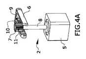 図4は、軸(8)を通して伝動装置により、今回は引張り方向と反対方向に、モータの主歯車(7)の回転を引き起こすステップモータ(5)の活動により引っ込められた、引張り機構(2)の詳細を示す。主歯車(7)のこの回転は、ねじ締めシャフト(10)によって第2のモジュール(3)に固定された引張り要素の歯車(9)の回転引き起こし、引張り要素(6)のラックと第2のモジュール(3)が係合することを可能にし、その結果、引張り方向と反対方向に引っ込められることができるようにする。 FIG. 4 shows the pulling mechanism (2) retracted by the transmission through the shaft (8), this time in the opposite direction to the pulling direction, by the action of the step motor (5) causing the rotation of the main gear (7) of the motor. Shows the details of. This rotation of the main gear (7) causes the rotation of the gear (9) of the tension element (6) which is fixed to the second module (3) by the screwed shaft (10), the rack of the tension element (6) and the second gear (6). Allows the module (3) to engage and thus be retracted in the direction opposite to the pulling direction.