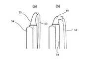 特に、図10の一部断面図に示すように、従来広く採用されている凸形状のブッシュ55の場合、その弾性が大きい、もしくは固いと、ブッシュ55の先端側で鋭角に屈曲されやすかった。However, when the
