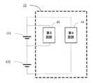 一例として、図11に示すように、均等化回路33は、第1回路41と第2回路42とを含んでも良い。前記第1回路41は前記第1バッテリセル131に接続され、前記第2回路42は前記第1バッテリセル131と前記第2バッテリセル132とに接続され、前記第1回路41がオンにされた場合に、前記第1回路41は、電気的接続により第1バッテリセル131から出力されたエネルギーを前記第2回路42に接続し、前記第2回路42は、前記第1回路41からのエネルギーにより第1充電電流を形成し、前記第1充電電流により前記第1バッテリセルと前記第2バッテリセルとを充電する。 As an example, as shown in FIG. 11, the