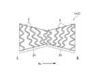 上記のようにステント本体部2の線材3の巻回方向を異ならせると、ぜん動運動によって縮径される際に、一方側の部分2cに生じる捻れと他方側の部分2dに生じる捻れが互いに打ち消しあう。これにより、図4の構成によればステント1aの留置部位からの逸脱をより一層抑制できる。Further, as shown in FIG. 4, when the stent