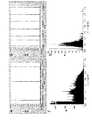 (図6)Aは、空の液滴(ピーク値−0.1V)及びビーズを含有する液滴から検出される、時系列の散乱光信号(濃い線)を示す。薄い線は、選別事象を起こすTTL信号を示す。x軸は、システムのクロック表示を表す(時間:分:秒:ミリ秒)。図6のBは、細胞を含有する液滴から検出される蛍光信号を示す。空の液滴には蛍光分子がなく、したがって、検出することができない。図6のC及びDは、(A)及び(B)から抽出したビーズ(C)及び細胞(D)の検出ピーク値のヒストグラムである。薄い線は、選別ゲート値を示す。 FIG. 6A shows a time-series scattered light signal (dark line) detected from an empty droplet (peak value −0.1 V) and a droplet containing beads. The thin line indicates the TTL signal that causes the sorting event. The x-axis represents the clock display of the system (hours: minutes: seconds: milliseconds). FIG. 6B shows a fluorescence signal detected from a droplet containing cells. Empty droplets are free of fluorescent molecules and therefore cannot be detected. C and D in FIG. 6 are histograms of detected peak values of beads (C) and cells (D) extracted from (A) and (B). The thin line indicates the sorting gate value.