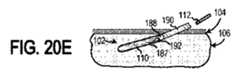 例19において、例2のインプラント可能なアクセスチャンバは前記第一の層及び第二の層を含み、前記第一の層及び第二の層は、前記組織と直接相互作用するように構成されたそれぞれの外面、前記外面の反対側のそれぞれの内面、ここで、前記内面は集合的にキャビティを画定している、及び、それぞれの側面、ここで、前記第一の層の前記側面は前記第二の層の側面と接触しそして隣接して配置されている、を含む。 In Example 19, the implantable access chamber of Example 2 comprises said first and second layers, the first and second layers configured to interact directly with the tissue. Each outer surface, each inner surface on the opposite side of the outer surface, where the inner surface collectively defines a cavity, and each side surface, where the side surface of the first layer is said to be the first. Includes, which are in contact with and adjacent to the sides of the two layers.