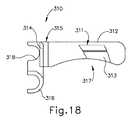 図17〜図18は第1のレバー(310)を示し、対して図19は第2のレバー(320)を示す。第1のレバー(310)は、第1の近位フレーム(351)の第1の面(354)に関連付けられ、一方、第2のレバー(320)は、第1の近位フレーム(351)の第2の面(356)と関連付けられる。第1のレバー(310)は、把持本体(312)と、回転ロック本体(314)と、枢動半体スリーブ(316)と、発射半体スリーブ(318)と、を含む。第1のレバー(310)の把持本体(312)はまた、ロック凹部(311)と開放端部(317)とを部分的に画定する傾斜面(313)を含み、これは、ロック突出部(374)と相互作用してレバー(310)を完全近位位置に選択的にロックするように構成されている。 17 to 18 show the first lever (310), whereas FIG. 19 shows the second lever (320). The first lever (310) is associated with the first surface (354) of the first proximal frame (351), while the second lever (320) is associated with the first proximal frame (351). Is associated with the second surface (356) of. The first lever (310) includes a gripping body (312), a rotary lock body (314), a pivot semifield sleeve (316), and a firing semifield sleeve (318). The gripping body (312) of the first lever (310) also includes an inclined surface (313) that partially defines the locking recess (311) and the open end (317), which is the locking protrusion (31). It is configured to interact with 374) to selectively lock the lever (310) in a fully proximal position.