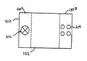 ディスプレイ全体は、この情報を示すために用いられてもよく、ディスプレイの一部だけがGUI制御部のために用いられてもよい。後者の場合には、図5~図8において、GUI150は標準領域152と制御領域154とに分離されてもよい。標準領域152は、特定の装置を使用するときディスプレイ122上に通常表示されるものを表す。すなわち、選択された装置に関連した標準GUIスクリーンは標準領域に表示される。例えば、PDAの場合には、メインメニュー(アイコンセットを備えるウィンドウ)、カレンダー、アドレスブックまたはデートブックは、標準領域152に表示されてもよい。一方、制御領域154は、通常特定の装置上に物理的に配置される物理的制御部を事実上表す。すなわち、物理的制御部をまねる仮想の制御部は制御領域154に表示される。例えば、PDAの場合には、制御領域154は、手書き認識領域、ナビゲーションパッドおよび標準機能ボタンの仮想表示を含めばよい。 The entire display may be used to indicate this information, or only a portion of the display may be used for the GUI control unit. In the latter case, in FIGS. 5 to 8, the