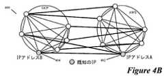 520において、プロセスは、仮想ネットワーク内のデータメッセージフローのための既知の送信元および宛先IPアドレス(例えば、企業エンティティによって使用されるSaaSプロバイダの既知のIP)をルーティンググラフに追加する。いくつかの実施形態では、プロセスは、可能性のあるメッセージフローのエンドポイントの各既知のIPアドレスを、そのエンドポイントに最も近いルーティンググラフのノード(例えば、MFNを表すノード)に追加する。そのような場合、いくつかの実施形態での処理は、遅延コストがゼロで損失コストがゼロのリンクを介して、そのような各エンドポイントが仮想ネットワークに接続されることを想定している。図4Bは、2つのSaaSプロバイダのための既知のIPを、これらのSaaSプロバイダのデータセンタに最も近いデータセンタにあるルーティンググラフの2つのノード402および404(2つのMFNを表す)に追加する例を示している。この例では、1つのノードがAWSパブリッククラウドにあり、もう1つのノードがGCPパブリッククラウドにある。 At 520, the process adds to the routing graph known source and destination IP addresses for data message flows in the virtual network (eg, known IPs of SaaS providers used by corporate entities). In some embodiments, the process adds each known IP address of a potential message flow endpoint to the node in the routing graph that is closest to that endpoint (eg, the node that represents the MFN). In such cases, the processing in some embodiments assumes that each such endpoint is connected to a virtual network via a link with zero delay cost and zero loss cost. Figure 4B shows an example of adding known IPs for two SaaS providers to two
