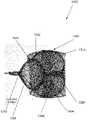 埋め込み形状において、第1のセグメントの少なくとも一部が、実質的に球形の空洞の空洞壁に接触するように位置決めされ得る、埋め込み形状であって、所定の形状の第1の反転部に対応する近位反転部が、実質的に球形の空洞への入口に位置決めされ、袋部が、実質的に球形の空洞内に位置決めされ、袋部の開口部が、ねじれており、それによって開口部を介した袋部へのアクセスを阻止することができる。埋め込み形状において、柱状セクションは、中心軸の周りでねじれることができる。 In the embedded shape, at least a portion of the first segment is an embedded shape that can be positioned to contact the cavity wall of a substantially spherical cavity, corresponding to a first inverted portion of a predetermined shape. The proximal inversion is positioned at the entrance to the substantially spherical cavity, the bag is positioned within the substantially spherical cavity, and the opening of the bag is twisted, thereby opening the opening. It is possible to prevent access to the bag portion through the bag. In the embedded shape, the columnar section can be twisted around the central axis.