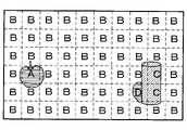 識別部323Aは、N×M個のサブ輝度画像の各々を識別対象画像として当該識別対象画像を表す画像データを識別モジュール312へ入力する。識別部323Aは、識別対象画像に写っている物体の種別を示すラベルを識別モジュール312から取得することで、当該物体の種別を識別する。図5では、N×M個のサブ輝度画像の各々について識別モジュール312から取得されるラベルが一文字のアルファベットで示されている。図5においてAはリンゴを、Bは背景物を、Cは花瓶を夫々表すラベルである。図5におけるDは、リンゴ、背景物及び花瓶の何れでもない物を示すラベルである。5行8列目のサブ輝度画像に対してラベルDが出力されるのは、当該サブ輝度画像には識別対象物A2の一部が写っているものの、識別対象物C1及び背景物B1も写っているため、識別モジュール312を用いた識別に失敗したからである。 The