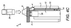 図4A〜図4Cは、本発明の別の実施形態における電子タバコ3を示す。この例示的な実施形態では、気化可能な媒体は、タバコのスティックではなく、液体である。カプセル30は、気化可能な液体を貯蔵するためのリザーバ34を含む。カートリッジ30は、統合電気ヒーター(図示せず)を含み、このヒーターは、使用者が吸入するための気化可能な液体を気化させるための電力を供給され得る。使用時、カートリッジ30は、電子タバコ3の上端にある収容部36内に収容される。気化可能な液体は、目に見える蒸気を生成することができるプロピレングリコール又はグリセリンであり得る。気化可能な液体は、ニコチン及び香料などの他の物質を更に含み得る。カートリッジの代替として、リザーバは、詰め替え可能な「オープンタンク」リザーバとして構成され得る。 4A-4C show the