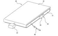 第三実施形態の寝具は、使用者がマットレスとして使用するものであり、図7、図8、図9及び図10に示すように、寝具本体30と、制御部40と、操作部50と、電源コード60とを備えている。この第三実施形態の寝具が第一実施形態の寝具と異なる主な点は、寝具本体30の構造である。第三実施形態の寝具のその他の構成は、第一実施形態の寝具のものと同様である。  The bedding of the third embodiment is used as a mattress by the user, and as shown in FIGS. A