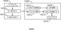 第2の方法は、図13のラダー図に関して説明するように、アテステーションを使用して、デバイスの完全性、クレデンシャル、またはアイデンティティを確認することができる。本明細書で使用される場合、アテステーションは、デバイスまたはプラットフォームの信頼プロパティを開示するためのセキュアな方法であり、デバイスまたはプラットフォームは信頼プロパティを自己報告する。信頼プロパティは、プラットフォーム製造業者、暗号モジュール実装用のFIPS140-2など、セキュリティ強化を反映したベンダによって達成された認証を含むことができる。さらに、ISO9000、および品質を確保するために従うベンダのプロセスも関連し得る。アテステーションは、典型的には、ハードウェア、ファームウェア、およびソフトウェアのバージョンおよびパッチレベルを明らかにする。トラステッド実行環境(TEE)などの強化された環境によって保護されている鍵に関する情報、および鍵の種類に関する情報を明らかにし得る。例えば、強化された環境では、それほど強化されていない暗号化モジュールには、ある種類の鍵をTPMから移行できないような鍵の種類を定義するためにトラステッドプラットフォームモジュール(TPM)を使用できる。  A second method may use attestation to verify device integrity, credentials, or identity, as described with respect to the ladder diagram of FIG. As used herein, attestation is a secure method for disclosing the trust properties of a device or platform, where the device or platform self-reports its trust properties. Trust properties can include certifications achieved by the platform manufacturer, vendors reflecting security enhancements, such as FIPS 140-2 for cryptographic module implementations. Additionally,