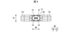 図8及び図9に示すように、収容部18内には、複数の検出素子20から出力された電気信号を処理するリジットタイプの回路基板22が設けられている。換言すれば、中空状の収容部18は、リジットタイプの回路基板22を収容する。また、可搬型放射線測定器10は、複数の検出素子20と回路基板22とを接続する複数の配線ケーブル24を備えている。複数の配線ケーブル24は、プローブ14内から持ち手部16内に亘って配置されている。換言すれば、持ち手部16は、複数の配線ケーブル24を収容するように構成されている。(
