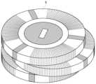 このような場合、図4に示すように(図2に示す従来チップに比べて)積層した多層構造になっており、側面に積層方向の縞模様がくっきりと形成されているので、賭けチップ計測装置19は容易に遊技用代用貨幣9の種類および枚数の測定を正確に行うことが可能となる。 In such a case, as shown in Figure 4, the chip has a stacked multilayer structure (compared to the conventional chip shown in Figure 2), and a striped pattern in the stacking direction is clearly formed on the side surface, so it is difficult to measure the bet chip. The