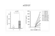 本願の一態様は、ヒトCD137の細胞外ドメインに特異的に結合する有効量の抗CD137抗体を投与された対象の予後を提供する方法であって、抗体が、配列番号1のアミノ酸残基51、53、62~73、83、89、92、95~104および112~116からなる群から選択される1つまたは複数のアミノ酸残基に結合し、方法が、対象の試料の総CD137、膜結合(mCD137)、可溶型CD137(sCD137)、CD137L、Ki67、NK細胞、CD8+エフェクターメモリーT(Tem)細胞制御性T(Treg)細胞およびNK細胞からなる群から選択される1つまたは複数のバイオマーカーのレベルを判定することを含み、抗CD137抗体の投与前の1つまたは複数のバイオマーカーのレベルと比較して、抗CD137抗体の投与後の総CD137、sCD137、Ki67、CD137L、CD8Tem細胞およびNK細胞からなる群から選択される1つまたは複数のバイオマーカーのレベルの上昇、ならびに/あるいはmCD137およびTreg細胞からなる群から選択される1つまたは複数のバイオマーカーのレベルの低下が、対象が抗CD137抗体治療に応答する可能性が高いと同定される、方法が提供される。いくつかの実施形態では、1つまたは複数のバイオマーカーのレベルは、CD137(例えば、腫瘍生検試料において)のレベルを含む。いくつかの実施形態では、1つまたは複数のバイオマーカーのレベルは(血漿試料などの)血液試料中のsCD137のレベルを含む。いくつかの実施形態では、1つまたは複数のバイオマーカーのレベルは、CD8+T細胞上のmCD137のレベルを含む。いくつかの実施形態では、1つまたは複数のバイオマーカーのレベルは、CD8+T細胞上のKi67のレベルを含む。いくつかの実施形態では、CD8+T細胞は腫瘍浸潤T細胞である。いくつかの実施形態では、1つまたは複数のバイオマーカーのレベルは、あるレベルのCD137L(例えば、腫瘍生検試料において)を含む。いくつかの実施形態では、1つまたは複数のバイオマーカーのレベルは、血液試料中のNK細胞のレベルを含む。いくつかの実施形態において、試料は腫瘍生検試料である。いくつかの実施形態では、試料はホルマリン固定パラフィン包埋(FFPE)試料である。いくつかの実施形態において、1つまたは複数のバイオマーカーのレベルが免疫組織化学(IHC)によって検出される。いくつかの実施形態において、試料は腫瘍生検試料である。いくつかの実施形態において、抗CD137抗体は500mg以下の用量(例えば、約50mg~約200mg、約100mg~約200mg、約150mg~約500mg、約150mg~約300mg、または約300mg~約400mg)で投与される。いくつかの実施形態では、方法は、有効量の免疫チェックポイント阻害剤、例えば抗PD-1抗体(例えば、トリパリマブ)を対象に投与することをさらに含む。One aspect of the present application is a method of providing a prognosis of a subject administered an effective amount of an anti-CD137 antibody that specifically binds to the extracellular domain of human CD137, wherein the antibody comprises amino acid residue 51 of SEQ ID NO:1 , 53, 62-73, 83, 89, 92, 95-104 and 112-116, the method binding to one or more amino acid residues selected from the group consisting of total CD137, membrane binding (mCD137), soluble CD137 (sCD137), CD137L, Ki67, NK cells, CD8+ effector memory T (Tem ) cells regulatory T (Treg ) cells and NK cells or total CD137, sCD137, Ki67, CD137L after administration of an anti-CD137 antibody, comprising determining levels of a plurality of biomarkers, compared to levels of one or more biomarkers before administration of an anti-CD137 antibody; elevated levels of one or more biomarkers selected from the group consisting of CD8Tem cells and NK cells and/or increased levels of one or more biomarkers selected from the group consisting of mCD137 and Treg cells Methods are provided wherein a decline is identified as a subject more likely to respond to anti-CD137 antibody therapy. In some embodiments, the level of one or more biomarkers comprises the level of CD137 (eg, in tumor biopsies). In some embodiments, the level of one or more biomarkers comprises the level of sCD137 in blood samples (such as plasma samples). In some embodiments, the level of one or more biomarkers comprises the level of mCD137 on CD8+ T cells. In some embodiments, the level of one or more biomarkers comprises the level of Ki67 on CD8+ T cells. In some embodiments, the CD8+ T cells are tumor-infiltrating T cells. In some embodiments, the level of one or more biomarkers comprises a level of CD137L (eg, in tumor biopsies). In some embodiments, the level of one or more biomarkers comprises the level of NK cells in the blood sample. In some embodiments, the sample is a tumor biopsy sample. In some embodiments, the sample is a formalin-fixed paraffin-embedded (FFPE) sample. In some embodiments, the level of one or more biomarkers is detected by immunohistochemistry (IHC). In some embodiments, the sample is a tumor biopsy sample. In some embodiments, the anti-CD137 antibody is at a dose of 500 mg or less (eg, about 50 mg to about 200 mg, about 100 mg to about 200 mg, about 150 mg to about 500 mg, about 150 mg to about 300 mg, or about 300 mg to about 400 mg). administered. In some embodiments, the method further comprises administering to the subject an effective amount of an immune checkpoint inhibitor, such as an anti-PD-1 antibody (eg, tripalimab).