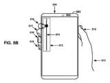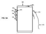 その結果、慣性モードモジュール242は、タップ・スワイプ対話パラダイムを提供する。サイドタップに続くスワイプジェスチャは、ユーザの意図の確認でもある。人間工学的観点から、ユーザは、図5A~図5Bに示すように、人差し指を使用してエッジをタップして、エッジインターフェイス(たとえば、音量制御インターフェイス)を呼び出すことができる。 As a result, inertial mode module 242 provides a tap-swipe interaction paradigm. The swipe gesture that follows the side tap also confirms the user's intent. From an ergonomic perspective, the user can use the index finger to tap the edge to invoke the edge interface (eg, volume control interface), as shown in FIGS. 5A-5B.