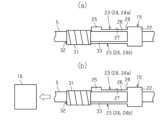 図4及び図5に示す通り、取付部23は、環状部22の一部から部分的に突出するように形成された複数の舌片部24である。本例の場合、舌片部24は、対向するように設けられた第1舌片部24a及び第2舌片部24bを含む。複数の舌片部24の少なくとも1つの先端には、電磁波吸収部材16の軸方向(図4のX軸方向)の移動を規制する突起25が形成されている。本例の場合、突起25は、第1舌片部24aの第1舌片本体26の先端に設けられている。舌片部24は、例えば、略板状に形成されている。As shown in Figures 4 and 5, the mounting