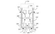 図13および図14に示すように、本考案は、軸方向コネクタ114の代わりに径方向コネクタ115を使用し、頂部にキャップ116を増設する。その以外の付属品は図5に示したものと同じである。  As shown in FIGS. 13 and 14, the present invention uses a
